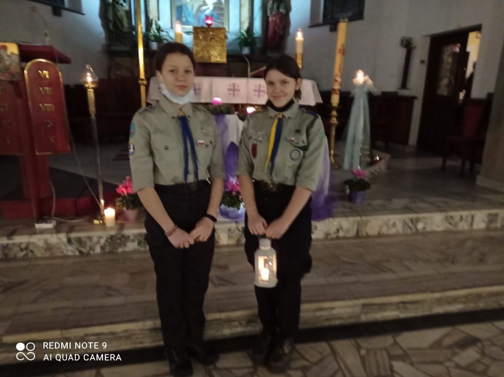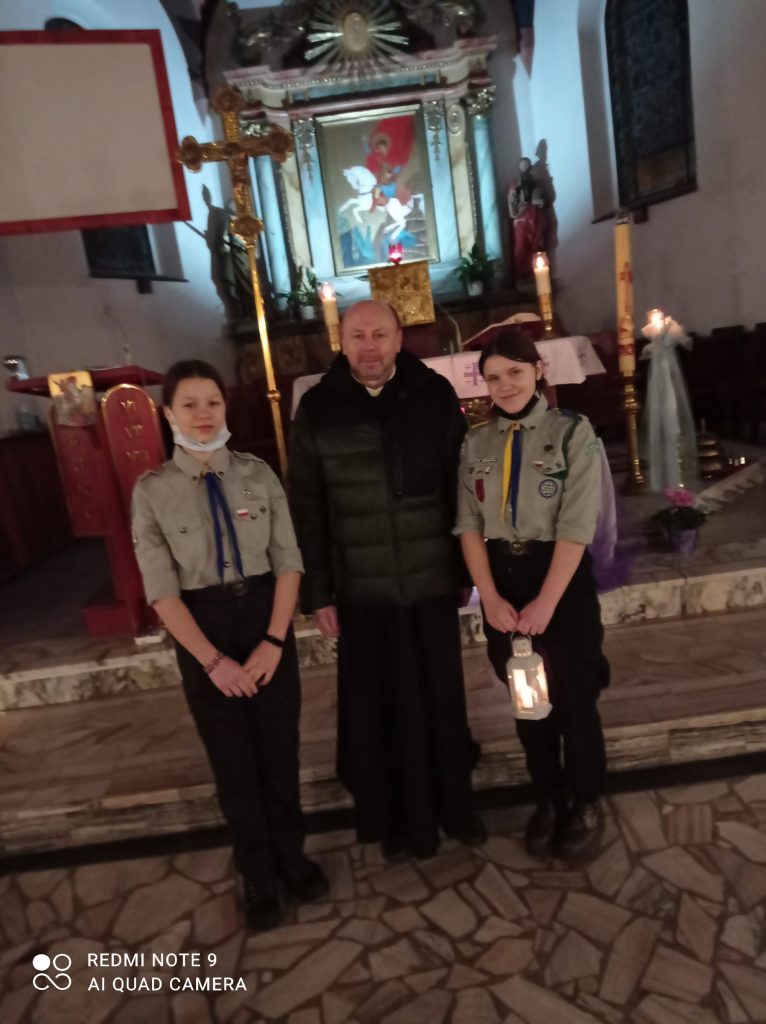 W dniu 16 grudnia 2021 na początku mszy roratniej ks. Andrzej przywitał harcerki z XI Grunwaldzkiej Wielopoziomowej Drużyny Harcerskiej „Impessa”, które przybyły do naszej świątyni z Betlejemskim Światłem Pokoju. Związek Harcerstwa Polskiego co roku, od 1991 w okresie świątecznym organizuje akcję przekazywania płomienia pokoju z Betlejem do wielu krajów Europy. Tradycyjnie harcerze otrzymują go od słowackich skautów na Łysej Polanie i przekazują dalej na wschód do Rosji, Litwy, Ukrainy, Białorusi; na zachód do Niemiec i na północ do Szwecji. W tym roku płomień pokoju dotarł do naszych harcerek z Krakowa, gdzie na Wawelu odbyła się uroczystość przekazania światła delegacjom hufców z całej Polski. Tegoroczne hasło sztafety pokoju brzmi „Światło nadziei”.