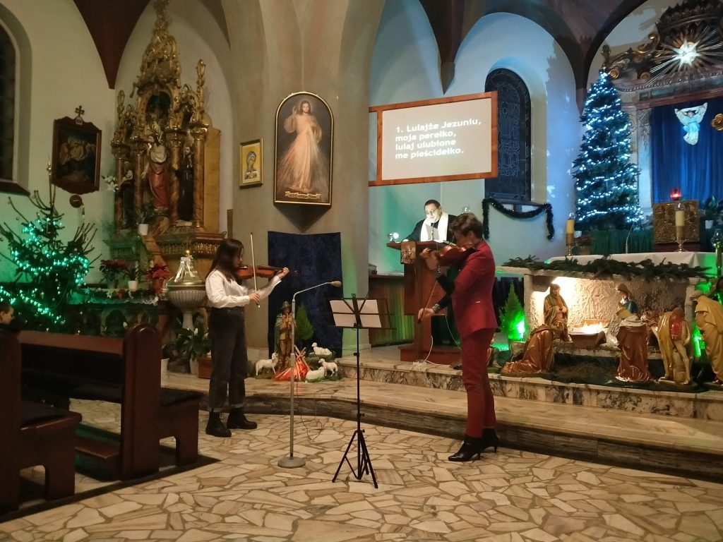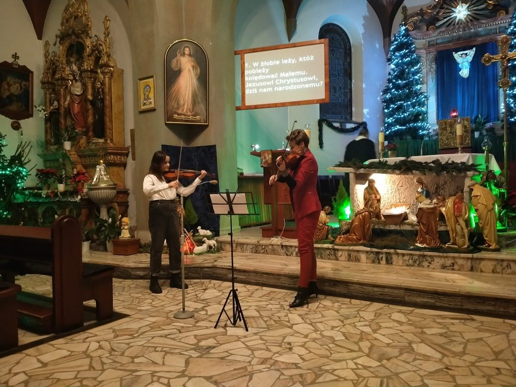 A zaraz po mszy wieczornej wziąć udział w 'wieczorze kolęd’, podczas którego mogliśmy zaśpiewać najpiękniejsze polskie kolędy. Ks. Krzysztof przybliżył nam historię, a także różnice między kolędami a pastorałkami. O akompaniament zadbał nasz organista, pan Michał, a także pani Joanna z wychowankami.